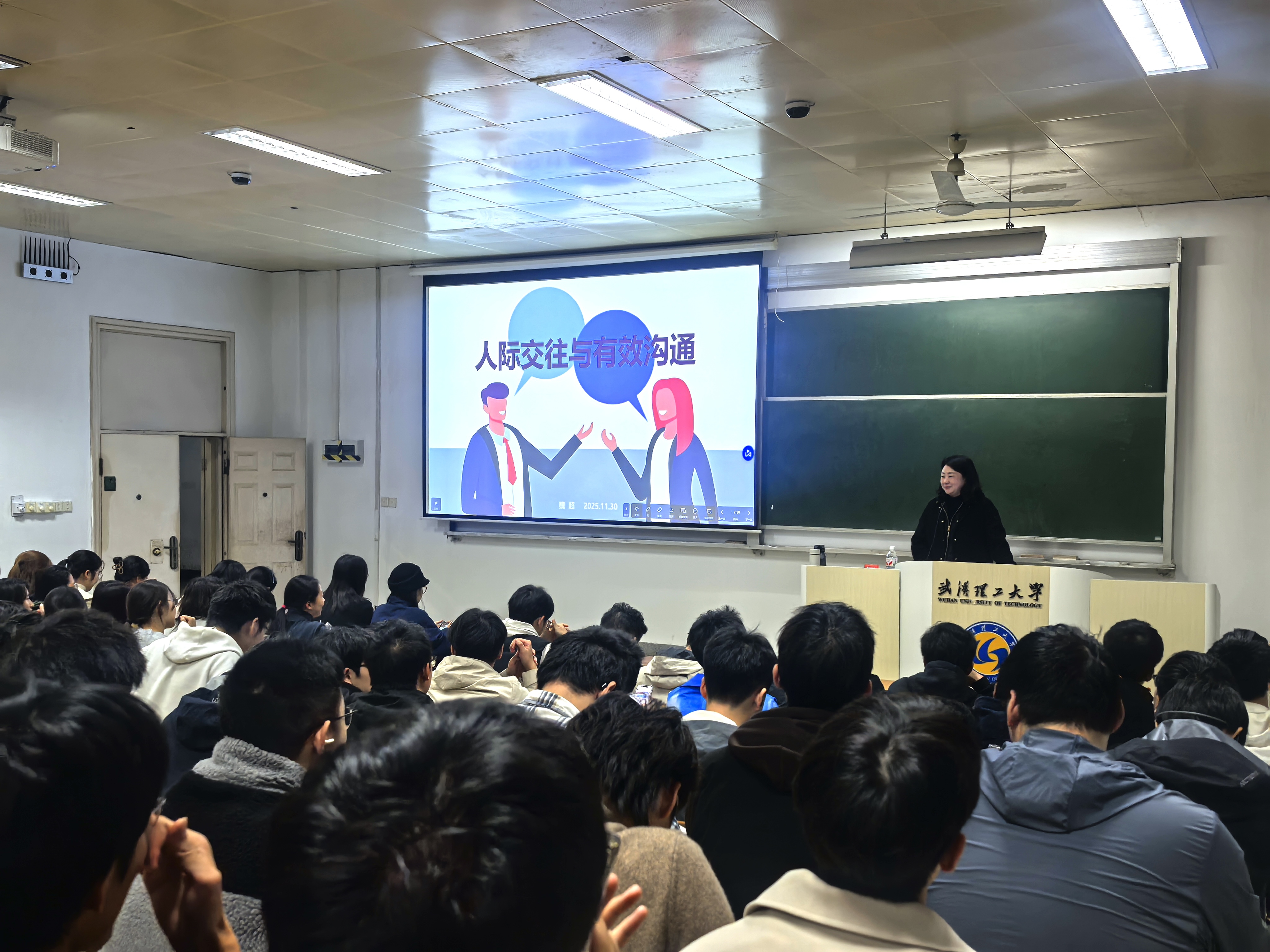 11月30日,武汉理工大学就业指导中心魏超教授围绕“人际交往与有效沟通”主题进行了深度讲授。她以其深厚的学术积淀,系统剖析了有效沟通的本质,引导同学们破除常见误区。课程重点传授了深度倾听、精准表达、非语言沟通及冲突管理等关键技能,并通过案例研讨与情境模拟相结合的互动形式,助力大家掌握策略性沟通思维,夯实公众表达的关系与逻辑基础。