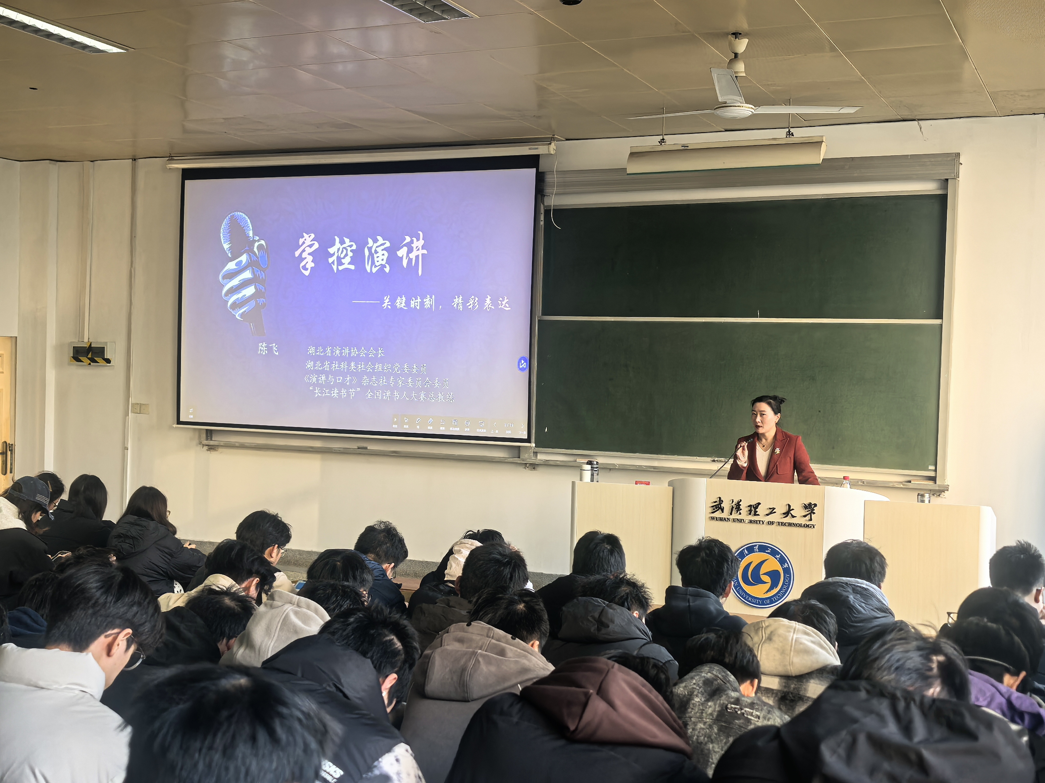 12月14日,湖北省演讲协会陈飞会长以“掌控演讲”为题带来了精彩分享。陈飞会长凭借其作为国家级赛事评委的丰富经验,系统拆解了演讲的核心方法论。她深入阐释了“目标思维法”与“演讲三段论”的实用结构,并分享了如何通过故事设计、金句打磨与情感共情来全面提升演讲的感染力。同学们在沉浸式的互动中,学习了克服紧张、驾驭舞台的实战技巧。