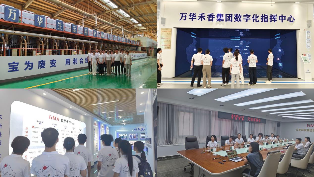 深化企地交流,以经验互鉴提升实践能力。7月12日,实践队走进万华生态新家装(信阳)有限公司、谷麦光电科技股份有限公司,围绕“企业创新发展”主题进行深度交流。在考察无醛板材、光电显示元件生产工艺的过程中,队员们重点了解了企业如何将生产研发与绿色发展战略相结合,以及企业凝聚人才力量、推动技术创新,为国家绿色家居产业升级与战略新兴产业发展提供支撑的实践案例。