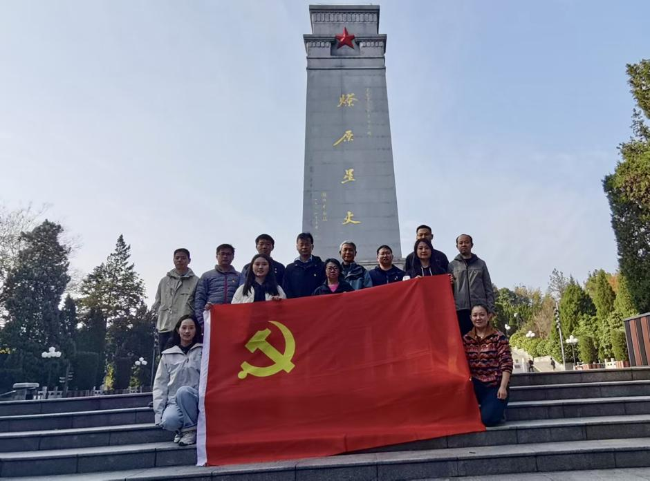 23日下午,支部党员们怀着崇敬的心情参观了红军广场,瞻仰了“燎原星火”革命纪念塔,向革命烈士敬献花篮。支部书记魏平领誓,全体党员高举右手,庄严宣誓,重温入党誓词。