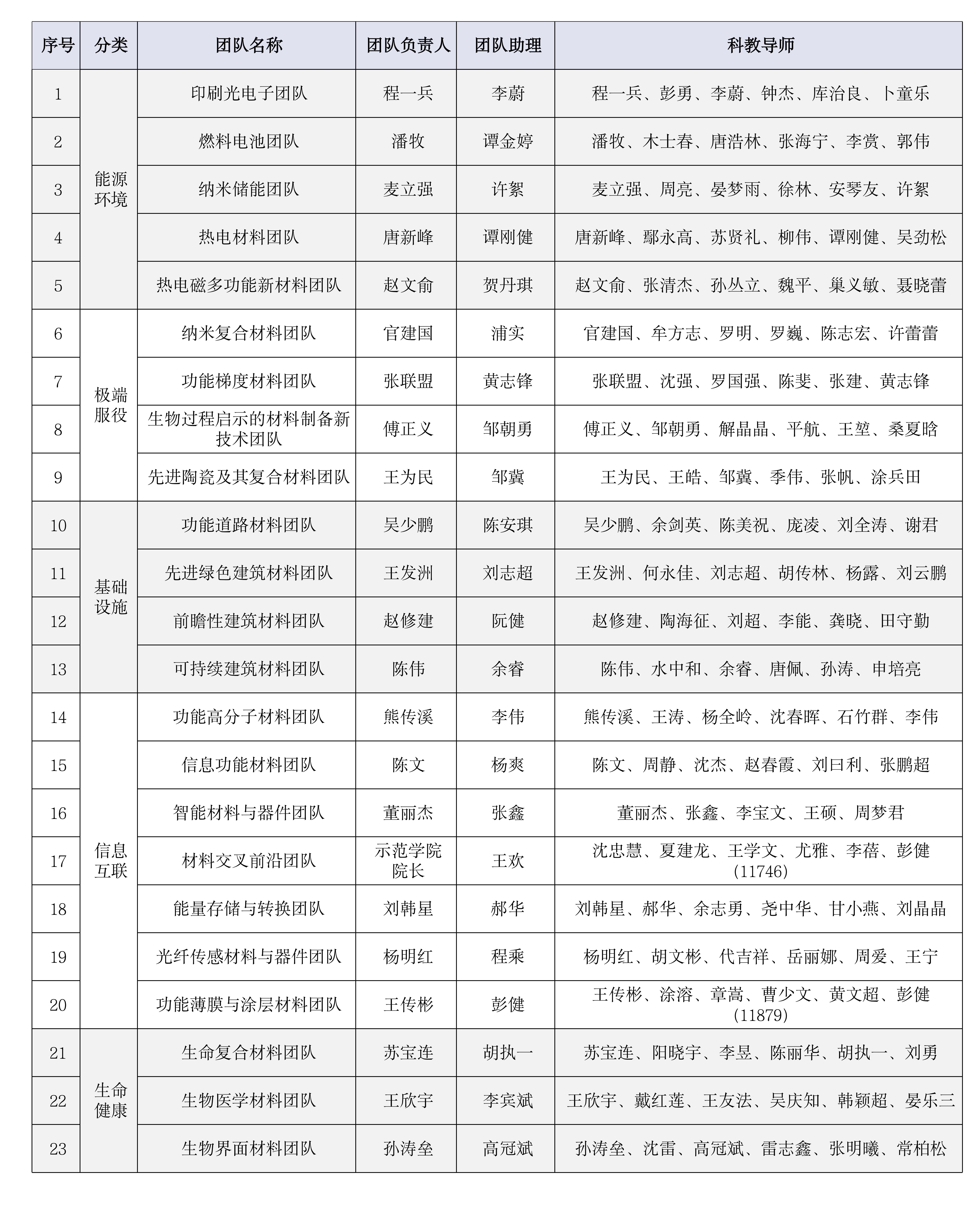 材料科学与工程拔尖创新人才培养导师队伍