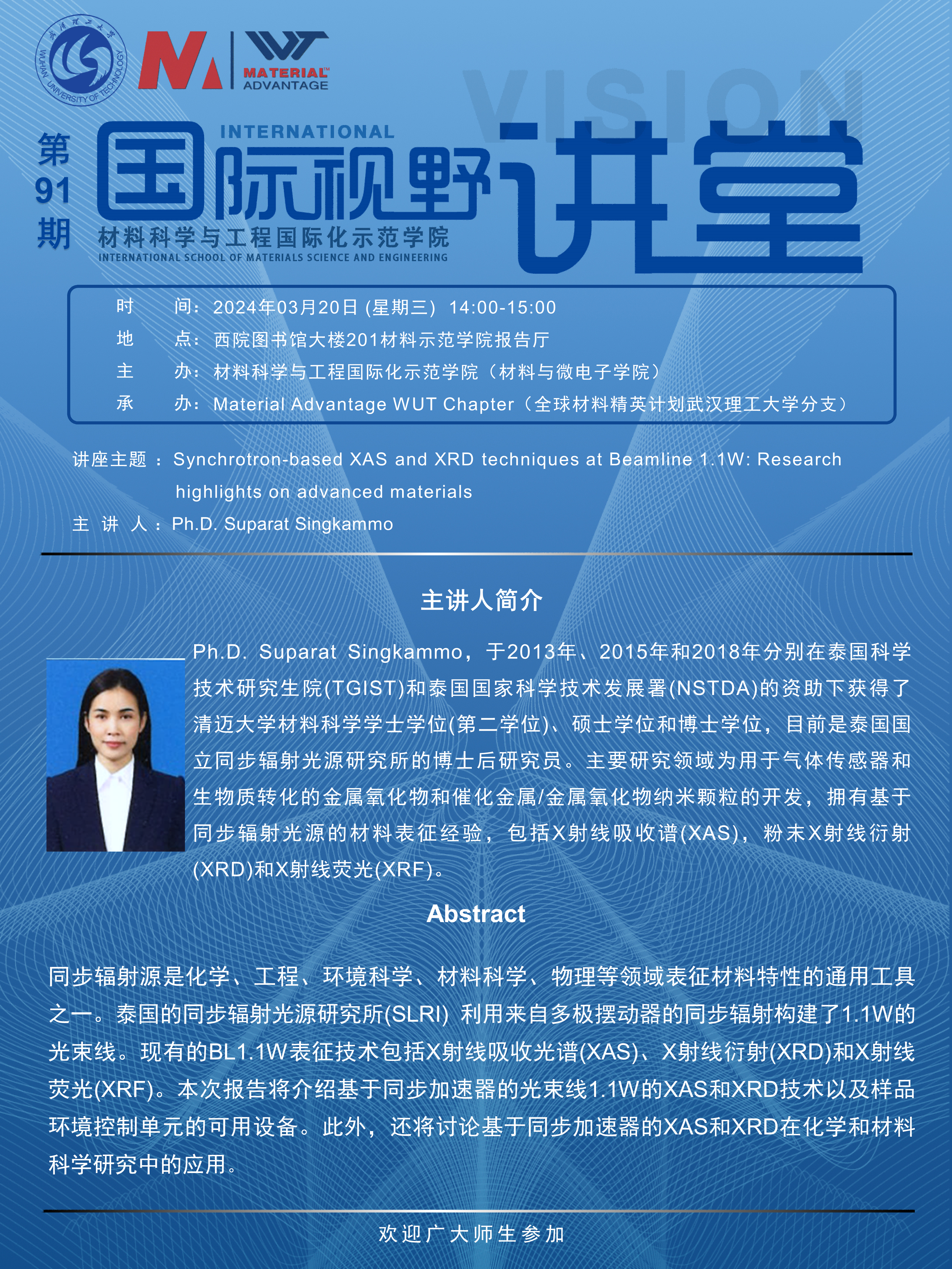 【国际视野讲堂】第91期:泰国国立同步辐射光源研究所Suparat Singkammo博士学术报告会
