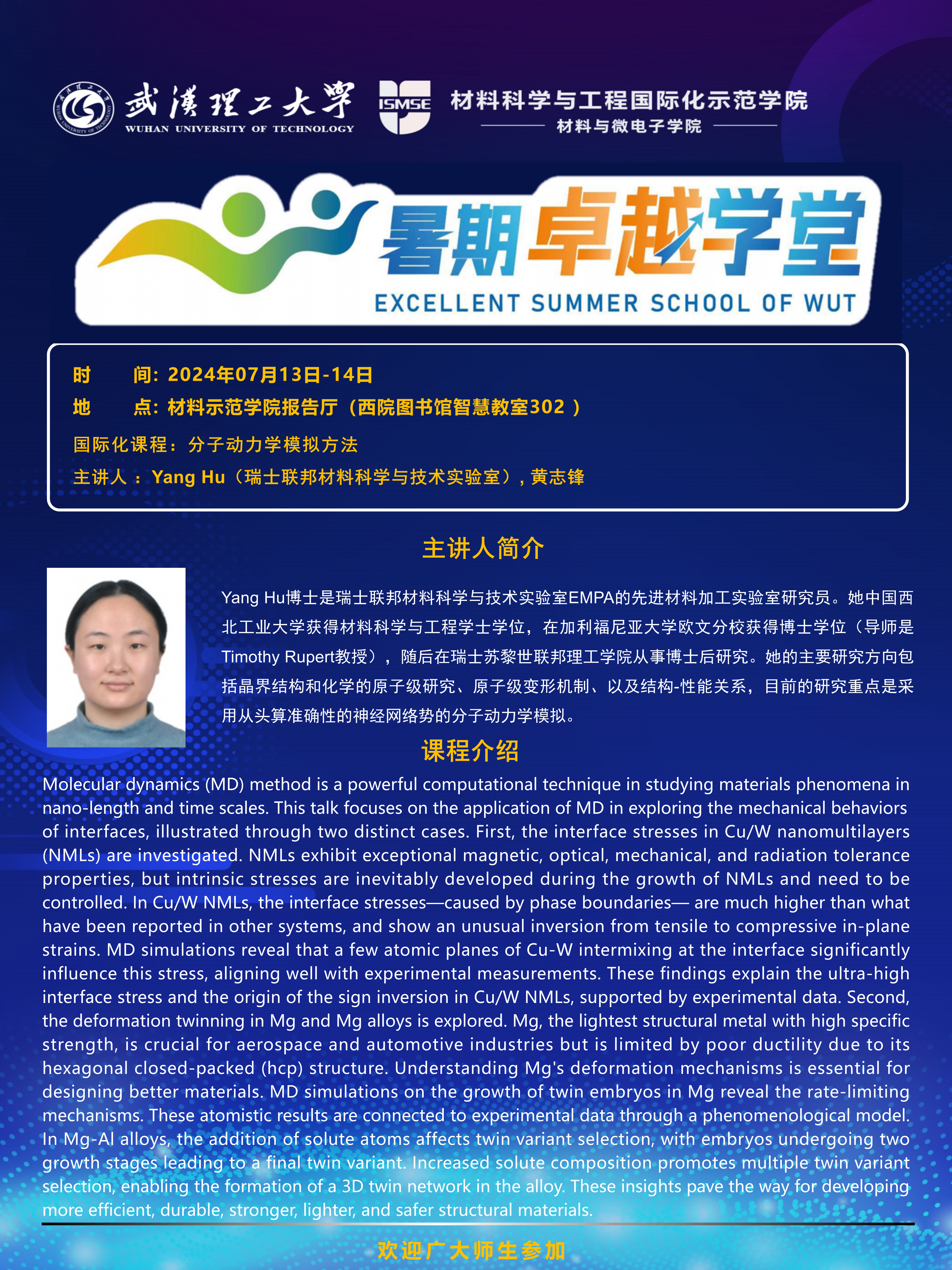 【篮球博彩 暑期卓越学堂】国际化课程《分子动力学模拟方法》