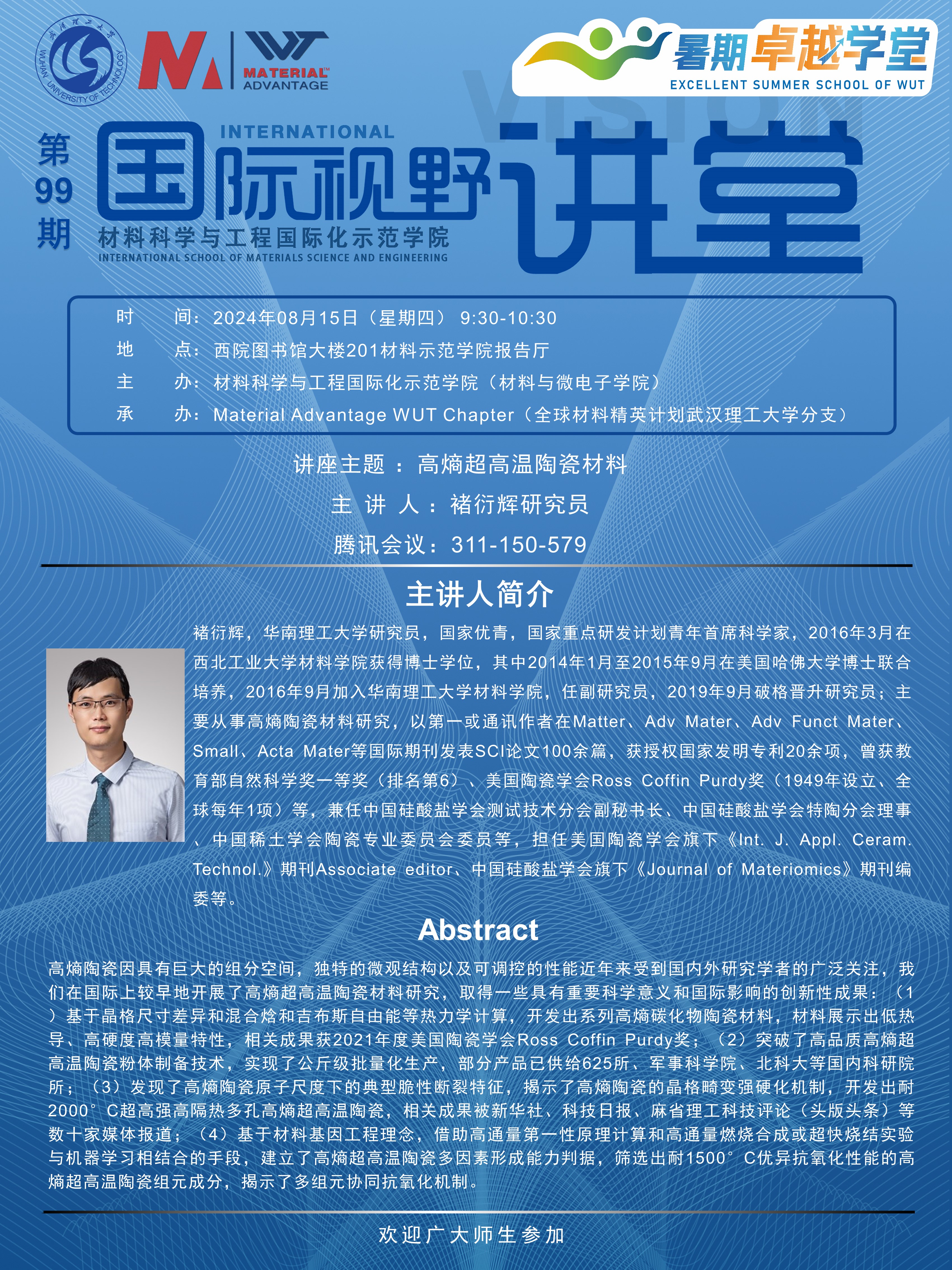 【篮球博彩 暑期卓越学堂】国际视野讲堂第99期:高熵超高温陶瓷材料