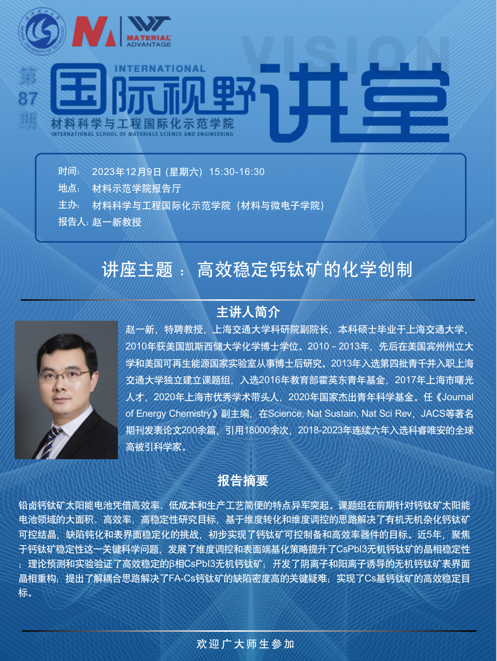 【国际视野讲堂】第87期:上海交通大学赵一新教授学术报告会
