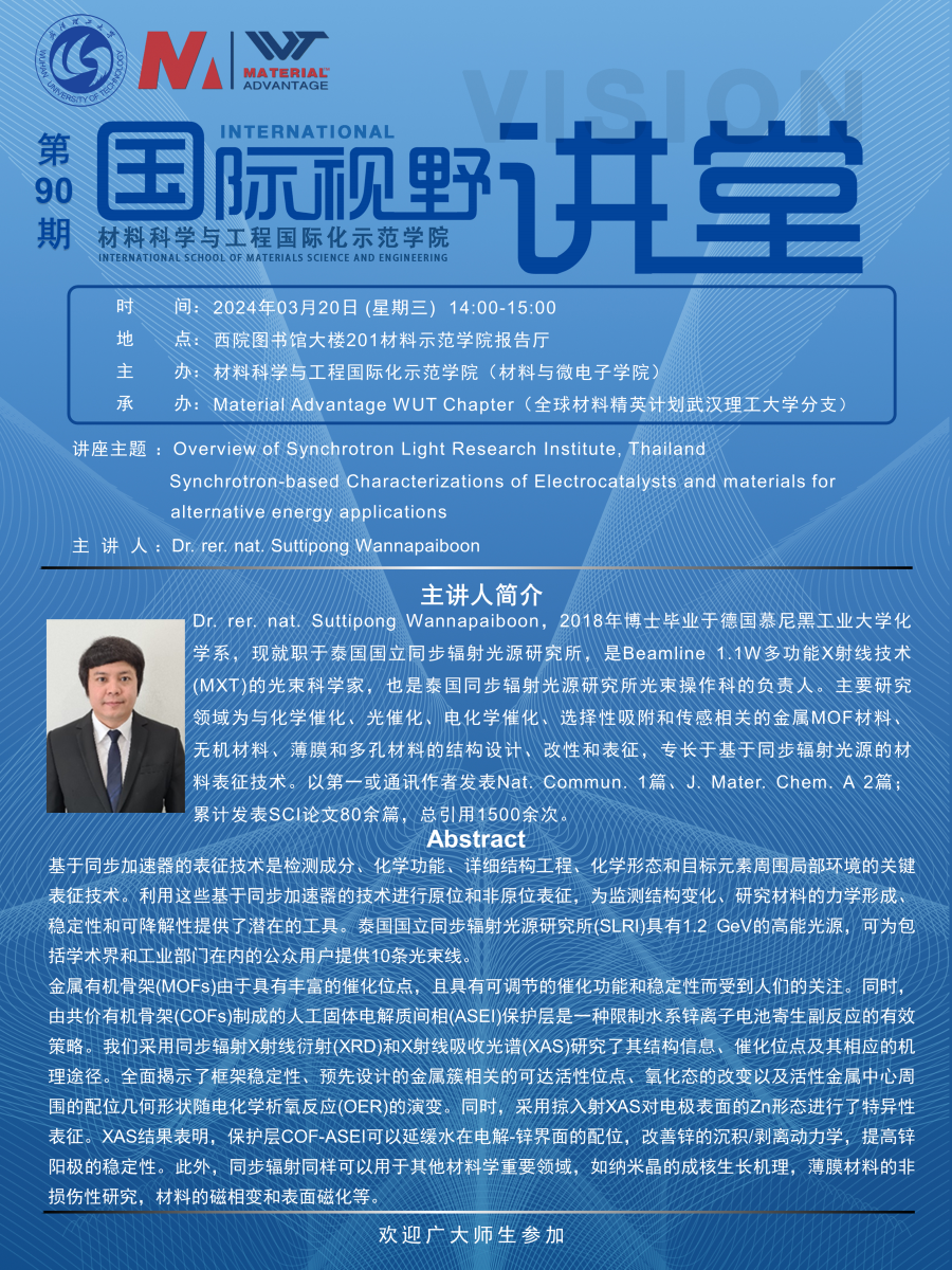 【国际视野讲堂】第90期:泰国国立同步辐射光源研究所Dr.rer.nat.Suttipong Wannapaiboon学术报告会