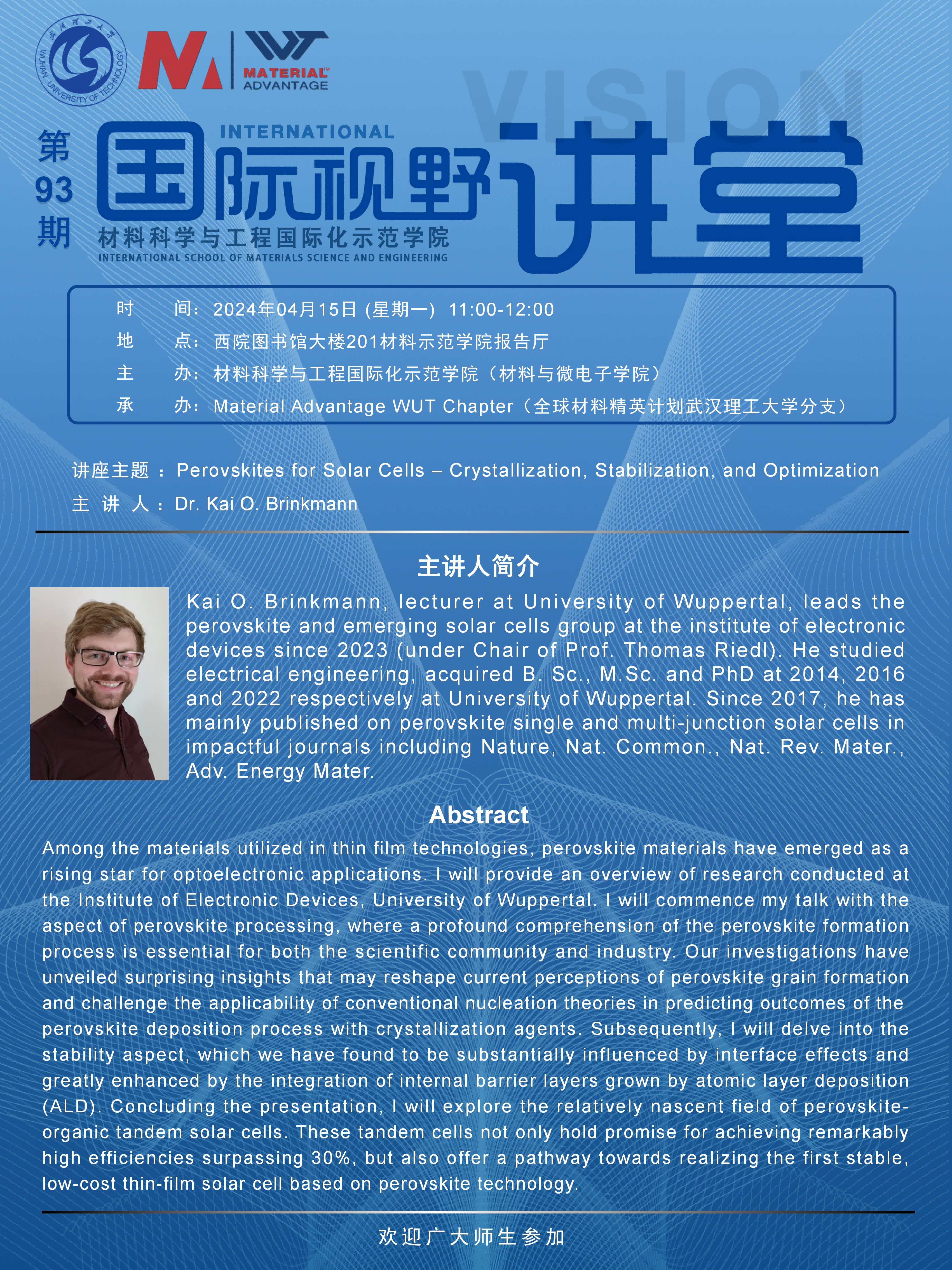 【国际视野讲堂】第93期:德国伍珀塔尔大学Kai O. Brinkmann博士学术报告会