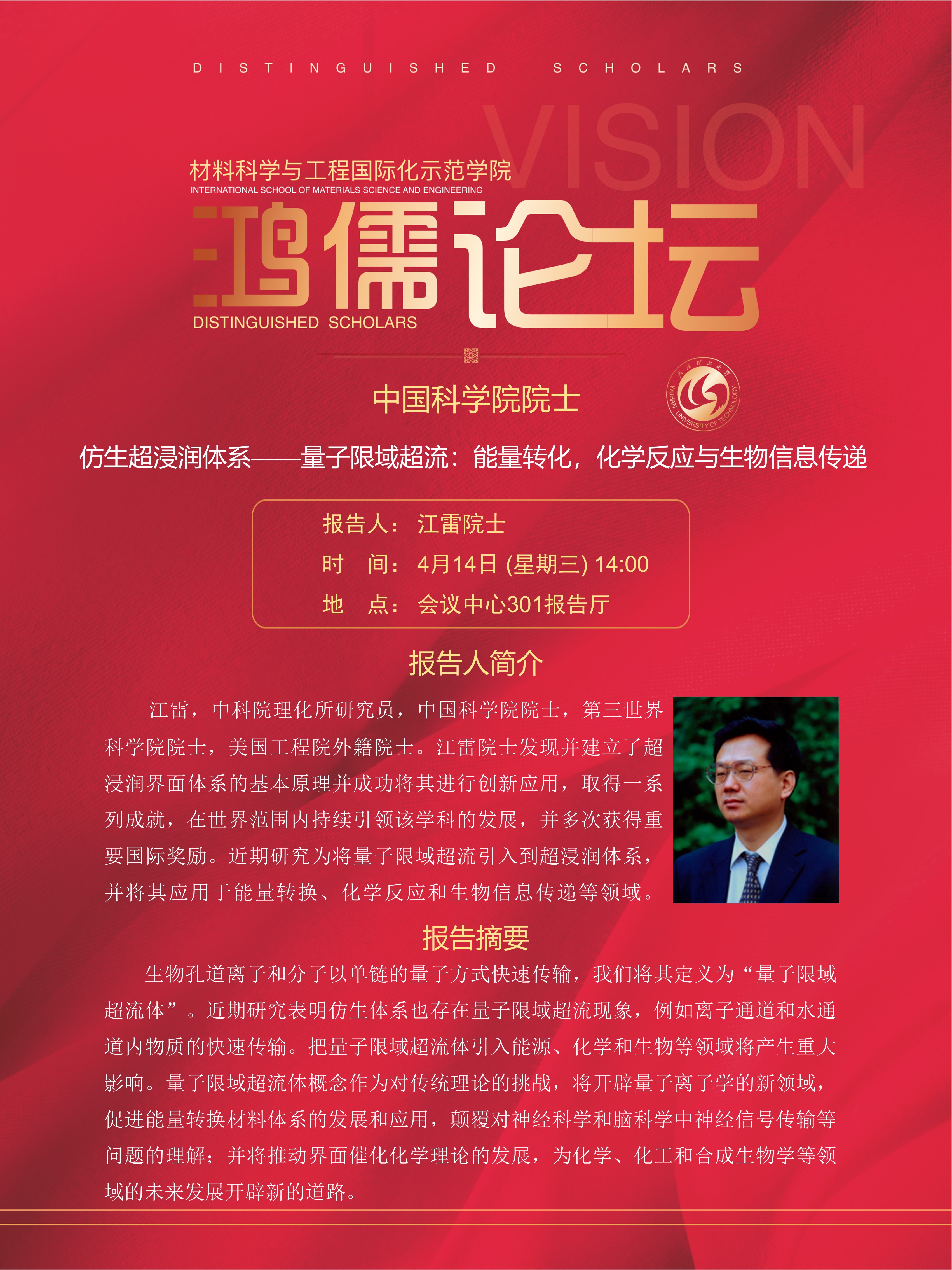 【鸿儒论坛】第27期:中国科学院院士江雷教授学术报告会