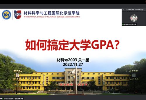 期末考试临近,为帮助2022级新生充分备考,11月27日晚,篮球博彩 学生会邀请材科sy2003班关一星同学作期末备考经验分享。