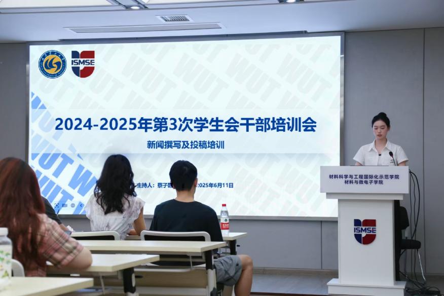 6月11日,篮球博彩 学生会在篮球博彩 报告厅组织召开了本学期第三次干部培训会,全体学生会干部参会。本次培训聚焦新闻撰写、照片选取与新闻投稿三大核心内容,由学生会执行主席蔡子翾主持。
